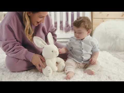 Flora the Bunny is an adorable singing animated plush with two different play modes. Press her left foot to play an interactive game of Peek-A-Boo, and her right foot to hear a "Peek-A-Boo" song in a cute child's voice. Suitable for ages 10m+. 3 x AA batteries included. Surface washable.