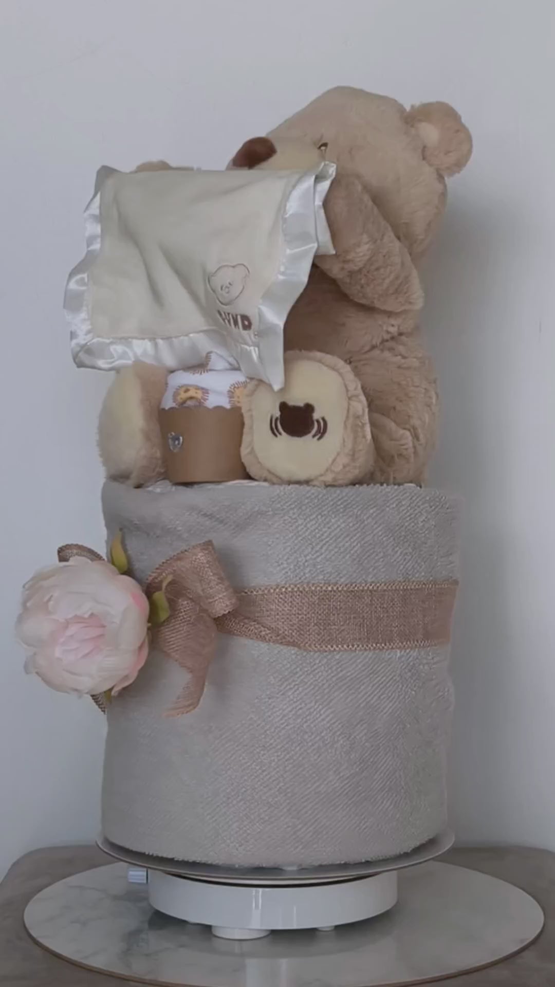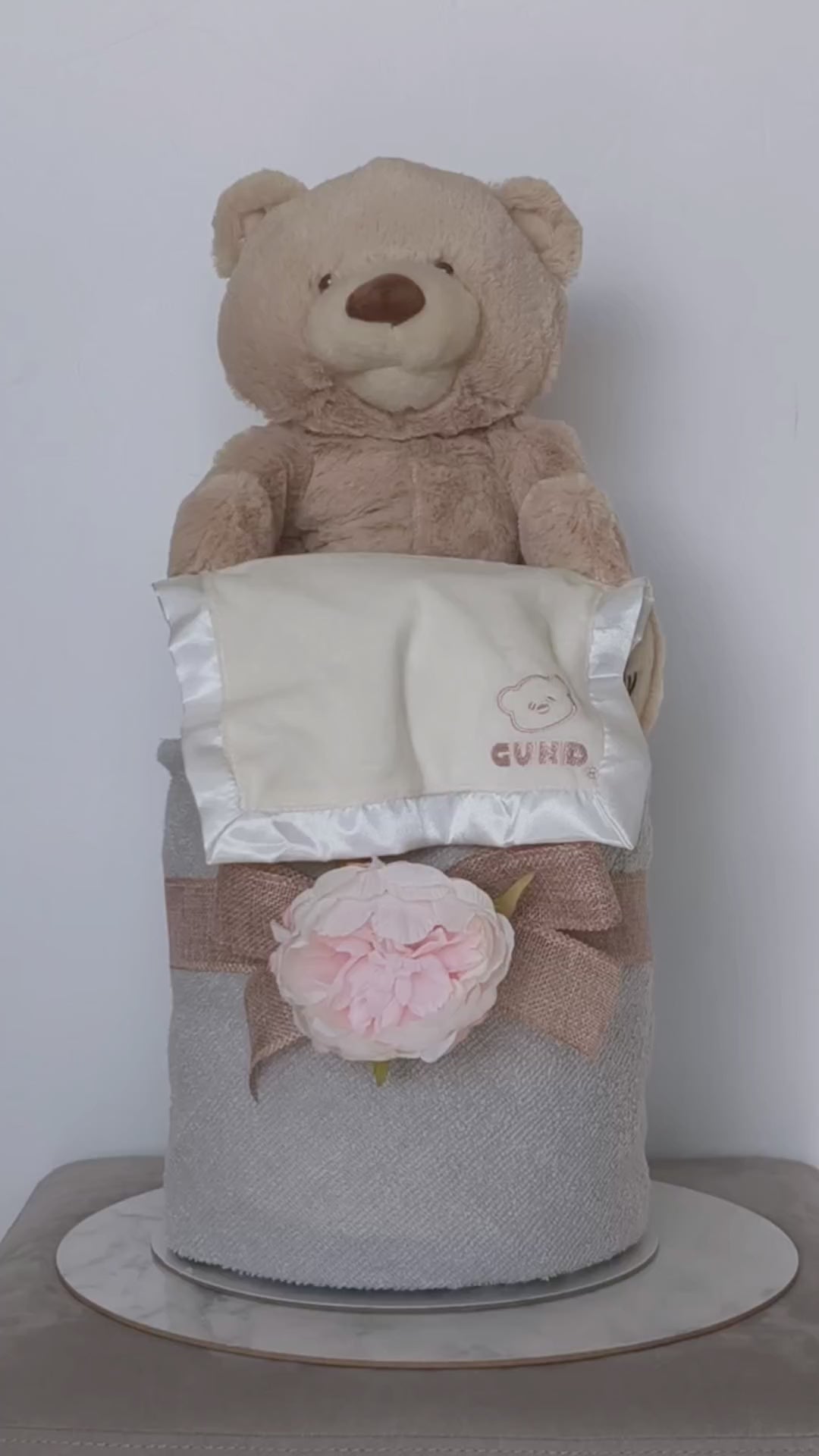 Celebrate the arrival of a precious newborn with our PEEK-A-BOO Bear Nappy Cake – a beautifully styled gift that combines adorable presentation with everyday baby essentials. Thoughtfully designed and ready to gift, this charming nappy cake can also be personalised with the baby’s name, making it a truly memorable keepsake for baby showers or welcome-home surprises.